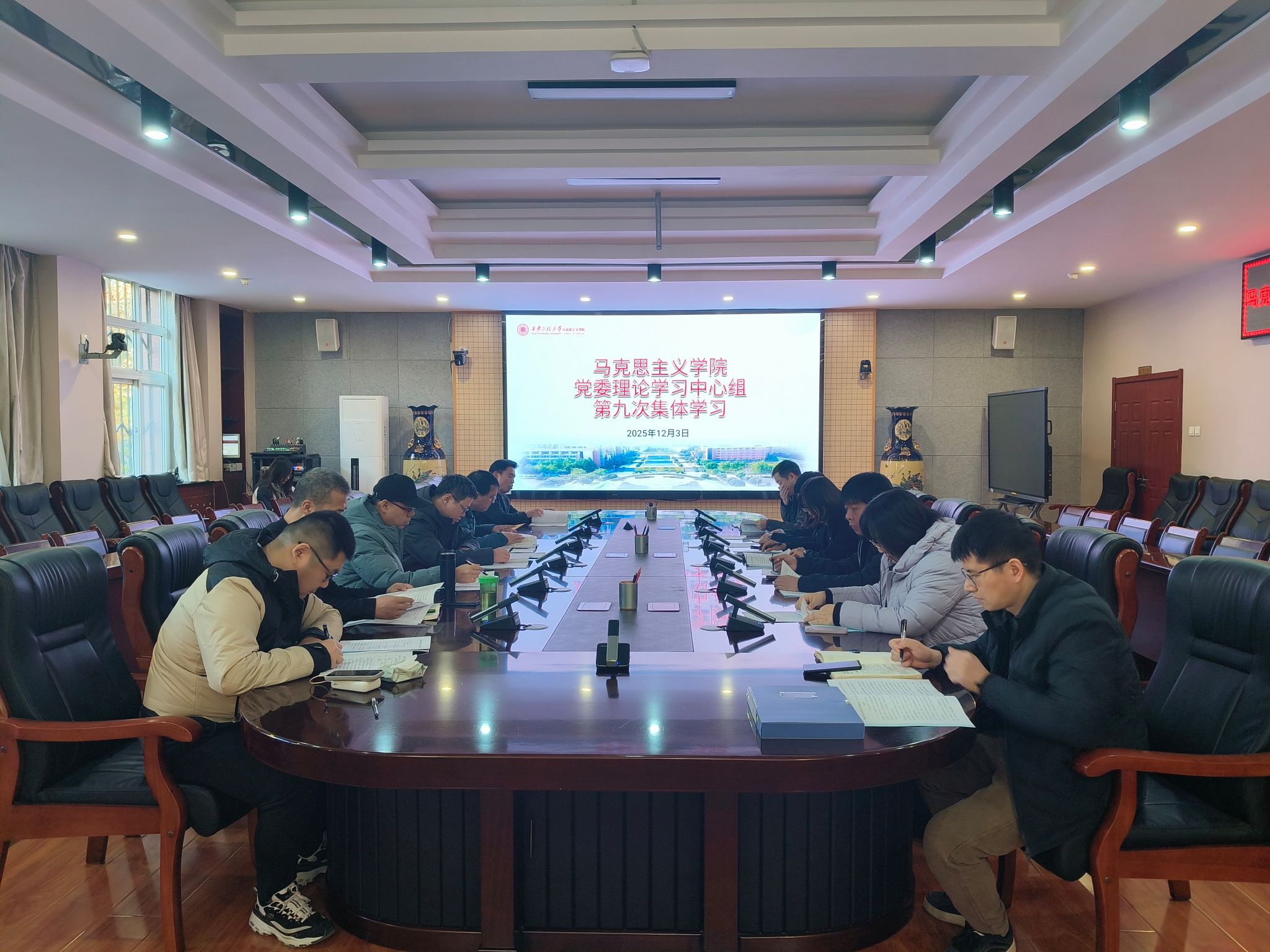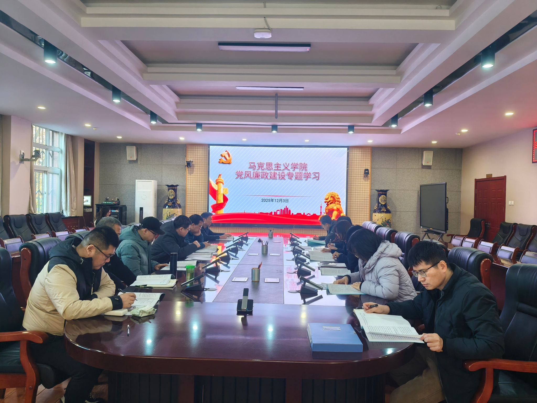 12月3日上午,马克思主义学院在金花校区第三会议室召开党委理论学习中心组第九次学习暨党风廉政建设专题学习会。学院领导班子成员、全体党支部书记、党委理论学习中心组成员参加会议。会议由学院党委副书记(主持工作)傅博娜主持。