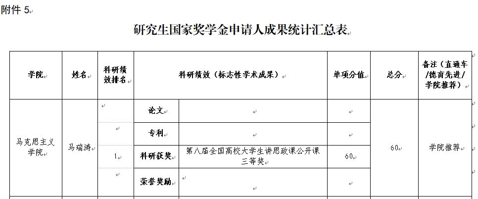 根据我校《关于印发<西安工程大学研究生奖助体系与实施办法(试行)>等四个文件的通知》(研字【2022】26号)的相关规定及学院名额分配计划,经学生申请、学院评审委员会严格按照评审细则、程序和工作要求,学院党政联席会讨论通过,现拟推选马瑞涛等1名同学评选研究生国家奖学金,公示时间从2025年9月17日18点至9月24日18点,如有问题,请在公示期内实名向学院反映。