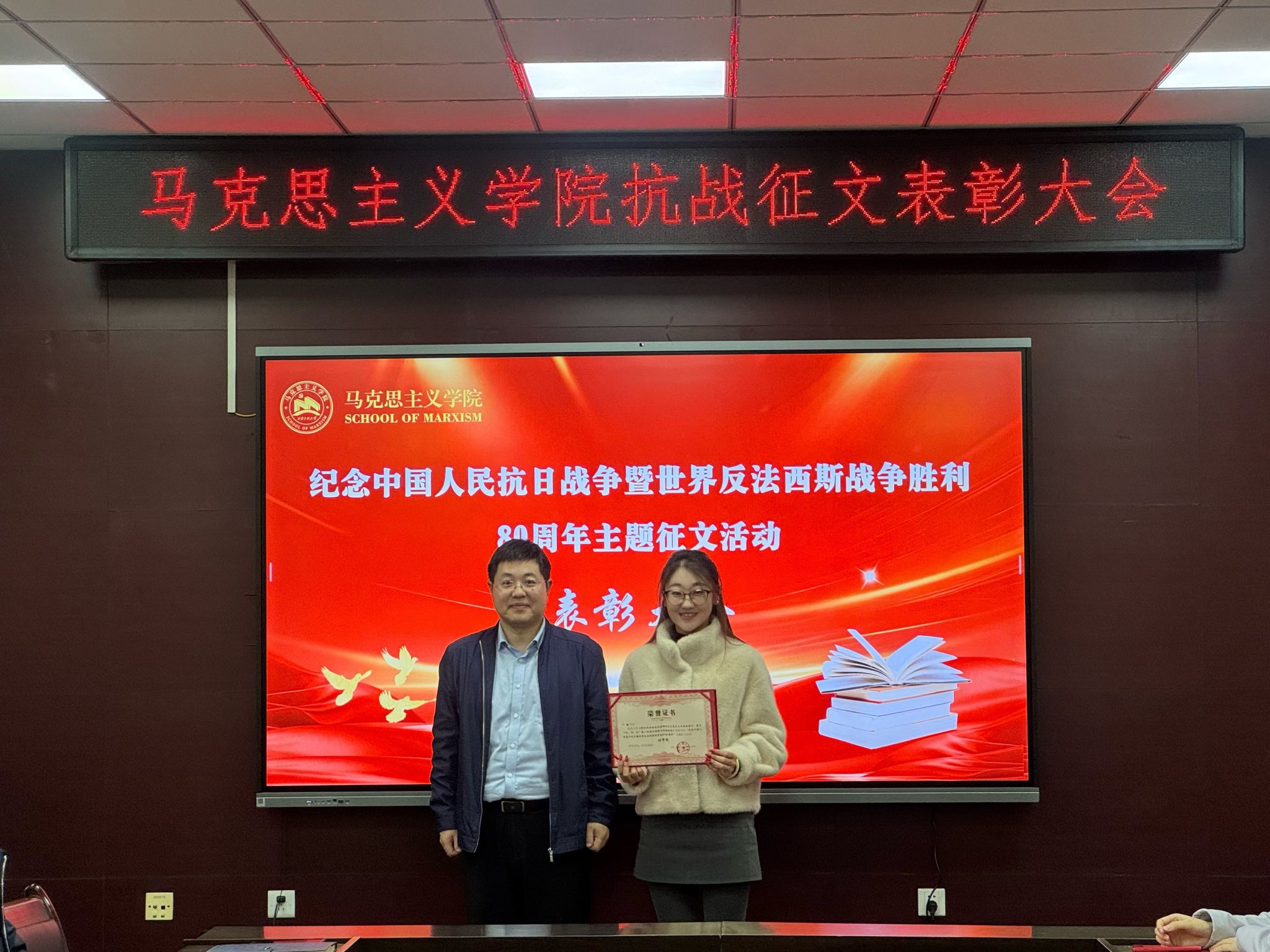 站在中国人民抗日战争暨世界反法西斯战争胜利80周年的历史节点,马克思主义学院继续秉持立德树人的根本任务,以文载道、以笔铸魂,推动马克思主义理论研究走深走实,引导广大师生从历史中汲取智慧,在时代的浪潮中坚定信仰。