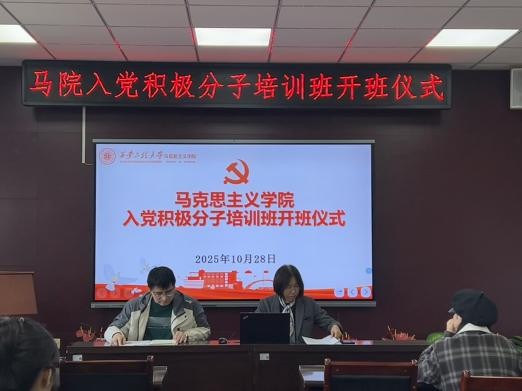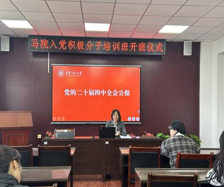 10月28日,马克思主义学院党委在人文楼203会议室举办入党积极分子培训班,本次培训班通过专题授课、观看视频、交流研讨等多种方式进行,2024级全体入党积极分子参加培训班。