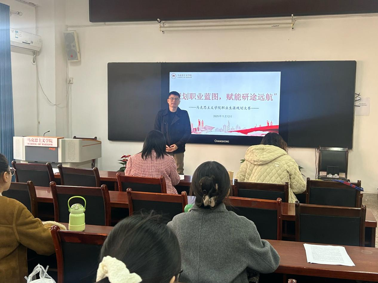 11月12日,马克思主义学院举办首届全国职业生涯规划大赛院赛,本次大赛紧扣“筑梦青春志在四方,规划启航职引未来”主题,聚焦就业赛道要求,面向马克思主义学院全体研究生,强化学生生涯规划意识与就业竞争力,更好锻炼和选拔种子选手。本次大赛邀请马克思主义学院习近平新时代中国特色社会主义思想概论教研室主任刘敏副教授,马克思主义学院教师刘佳担任评委。大赛由学院学生工作办公室主任梁育主持。