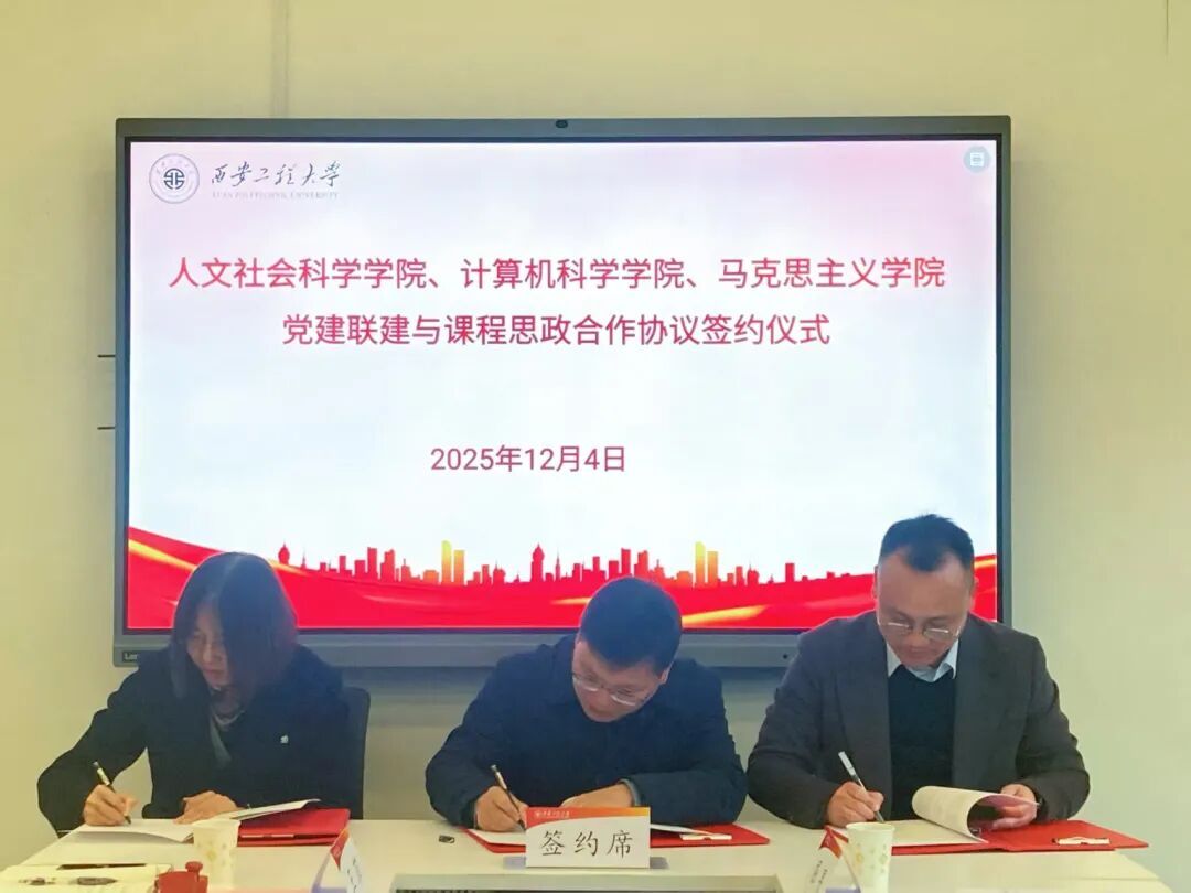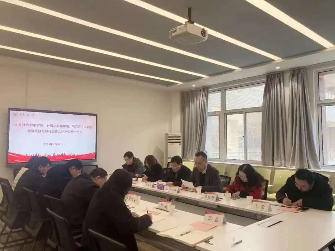 为深入贯彻落实新时代党的建设总要求,推动党建工作与教学科研、人才培养等业务工作深度融合。12月4日,人文社会科学学院、计算机科学学院和马克思主义学院在计算机科学学院会议室举行了《党建联建与课程思政合作框架协议》签署仪式,在学院党员代表的共同见证下,签署了党建联建与课程思政合作协议,正式启动了三个学院的党建联建和课程思政合作。人文社会科学学院党委书记李喜峰、计算机科学学院党委副书记闫小兵、马克思主义学院党委副书记傅博娜出席会议并签订协议,三个学院的党委副书记、教学副院长和部分教师代表参加会议,由闫小兵主持。