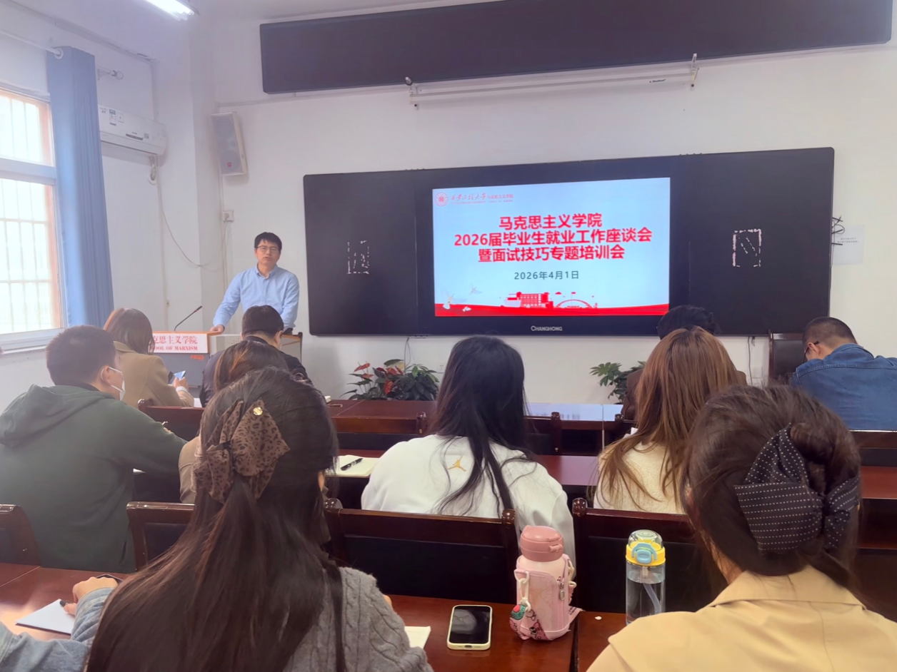 4月1日,马克思主义学院在219会议室召开2026届研究生毕业生就业工作推进会暨专题面试辅导。为进一步推动2026届研究生毕业生就业工作,提升同学们的就业技巧,学院副院长郭松,副书记傅博娜,院长助理李益鹏,学工办主任梁育及全体毕业生参加会议。
