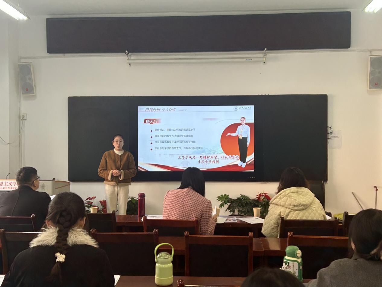 评委们从职业目标、学习实践行动、动态调整三个维度为每位参赛选手开展精准点评并提出优化建议。经过评审,2024级赵梦婷《扎根三尺讲台,深耕思政教育》、2025级孙馨悦《研教融合,逐光而行——做会科研的新时代骨干教师》及杨天巧《从梦想启航到桃李芬芳,在乡村沃土里绽放教育之花》分获前三。