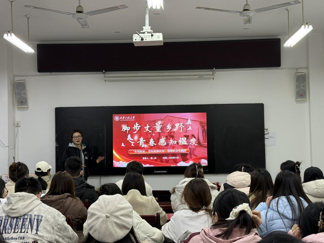 近日,学院赴安徽“乡里皖家,青年筑和兴乡”陕西省“三下乡”活动省级标兵团队成员向学院2025级全体研究生作“脚步丈量乡野,青春感知温度”主题实践事迹宣讲。