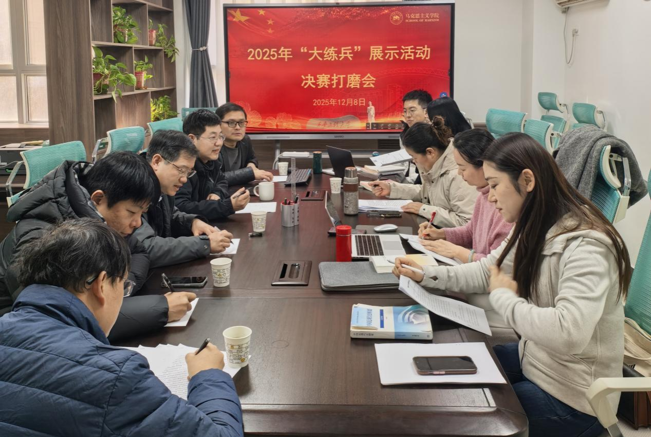2025年12月8日上午,马克思主义学院在金花校区举办思政课教师“大练兵”展示活动省级决赛打磨会。学院领导班子成员、各教研室主任以及进入到决赛的四位教师参加了会议。会议由副院长屈旻主持。